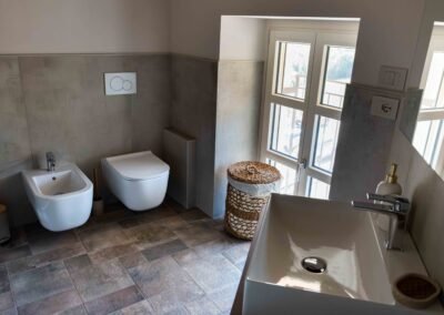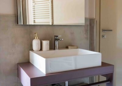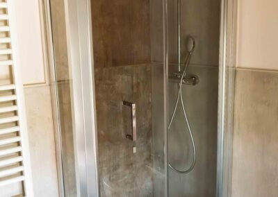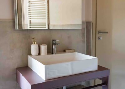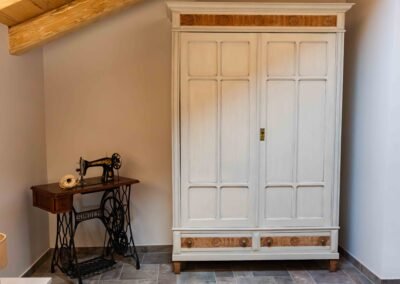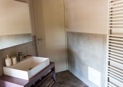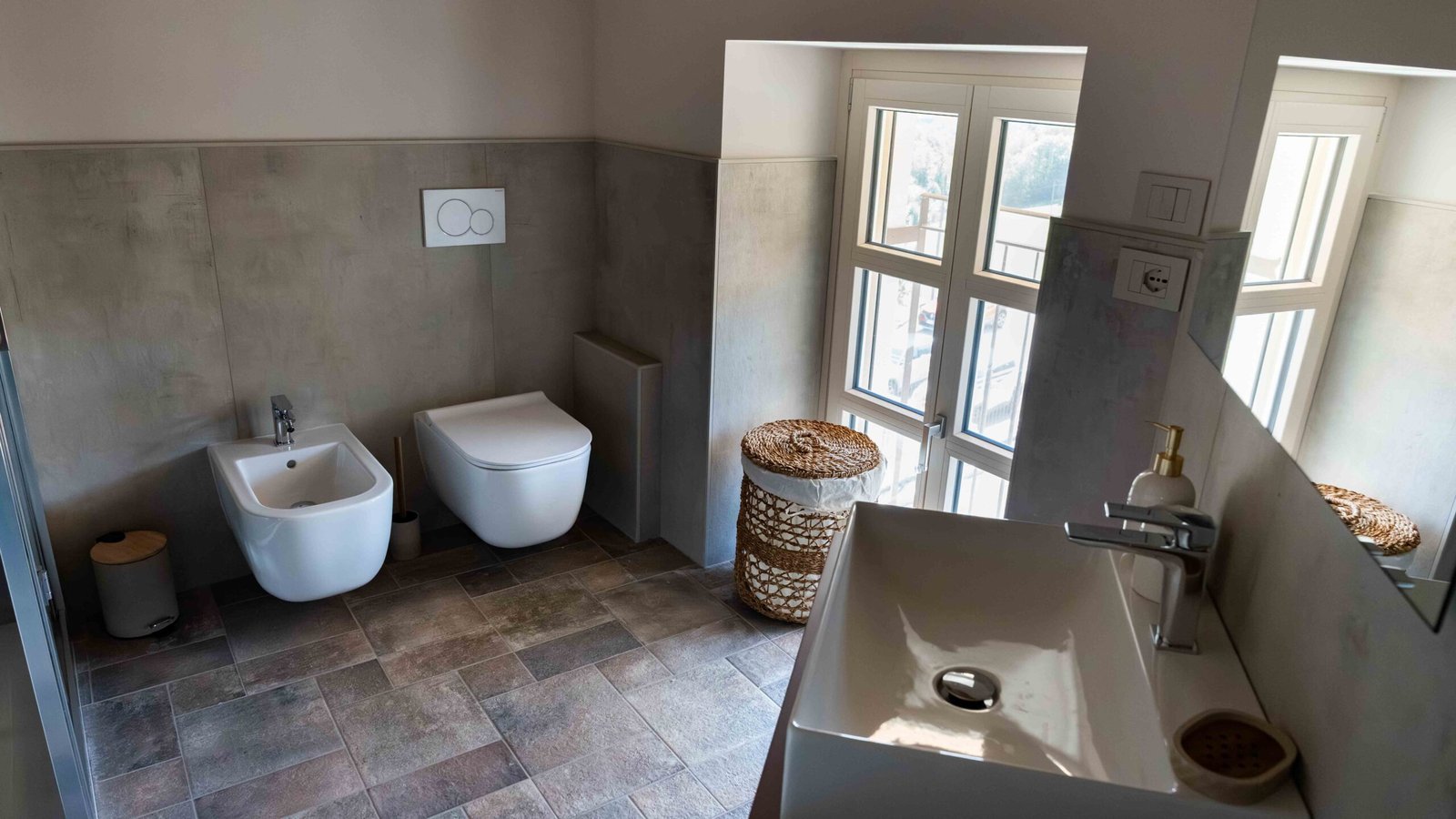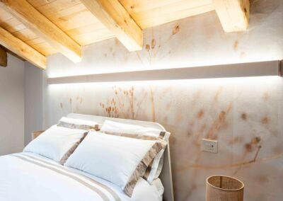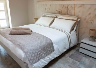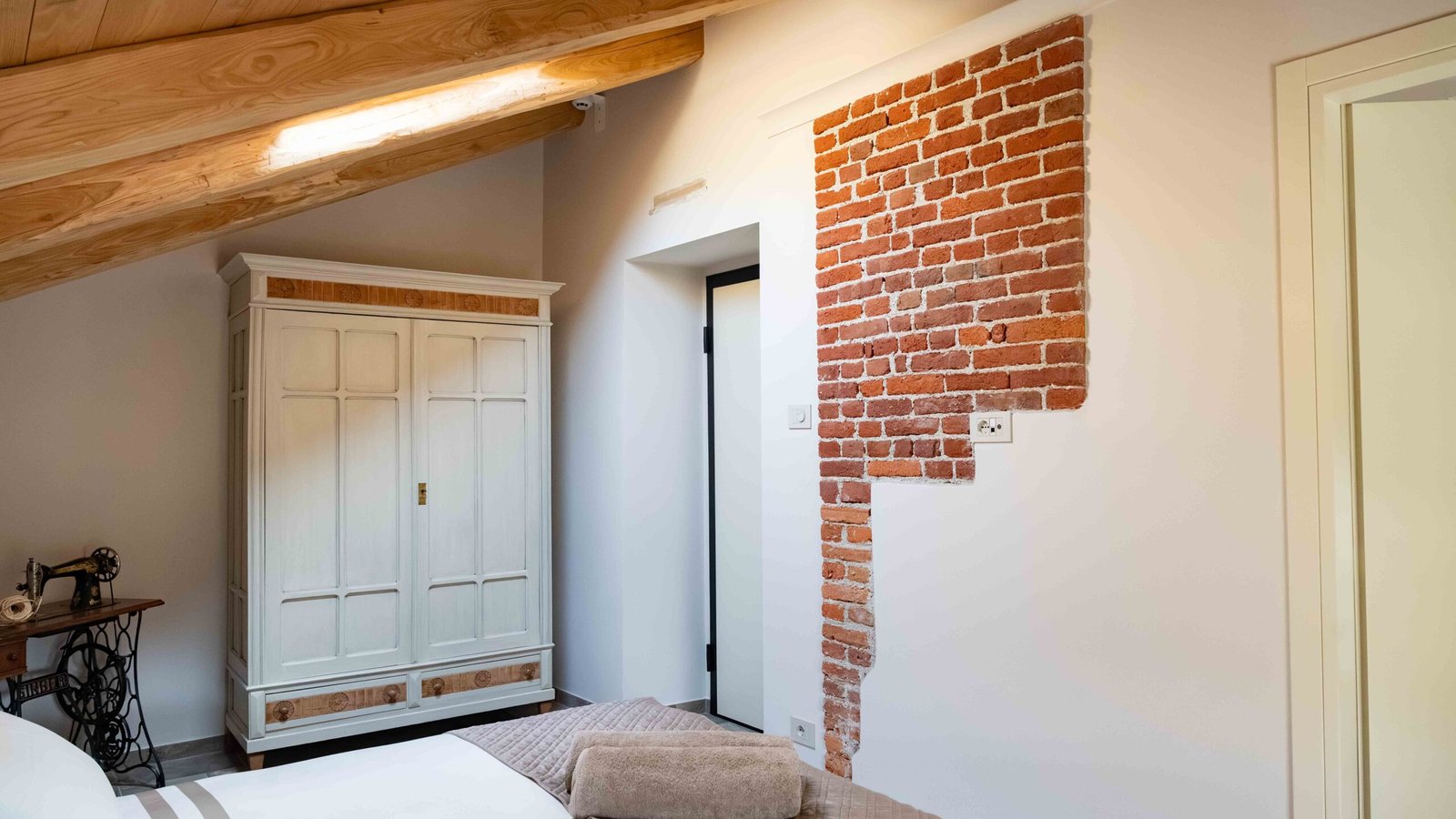 Il tema scelto per questo ambiente è il Fienile, luogo della cascina una volta destinato alla conservazione del fieno e del foraggio secco per il bestiame. La carta decorativa posizionata dietro la testiera del letto richiama i colori tenui e caldi del fieno, in perfetta sintonia con il tema scelto. Le tinte e l’arredamento si armonizzano perfettamente tra loro rendendo lo spazio luminoso ma allo stesso tempo rilassante: una perfetta bomboniera per un soggiorno di coppia. L’arredamento comprende un letto matrimoniale, due comodini, una TV, un frigo bar, una postazione caffè e un armadio con cassetta di sicurezza. Il bagno, ampio e luminoso, è completo di sanitari sospesi, doccia e mobile lavabo con specchio.