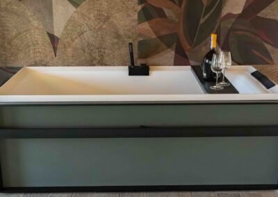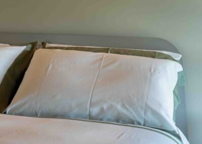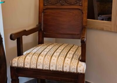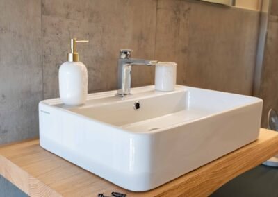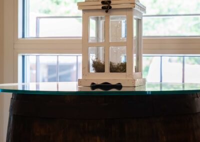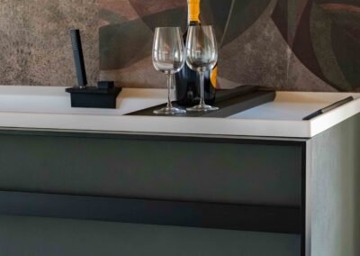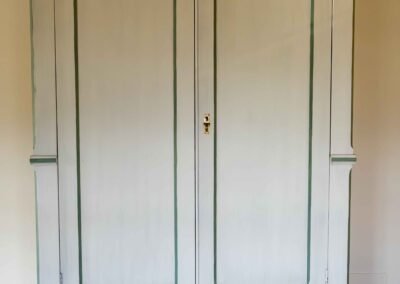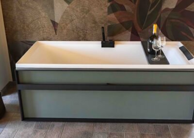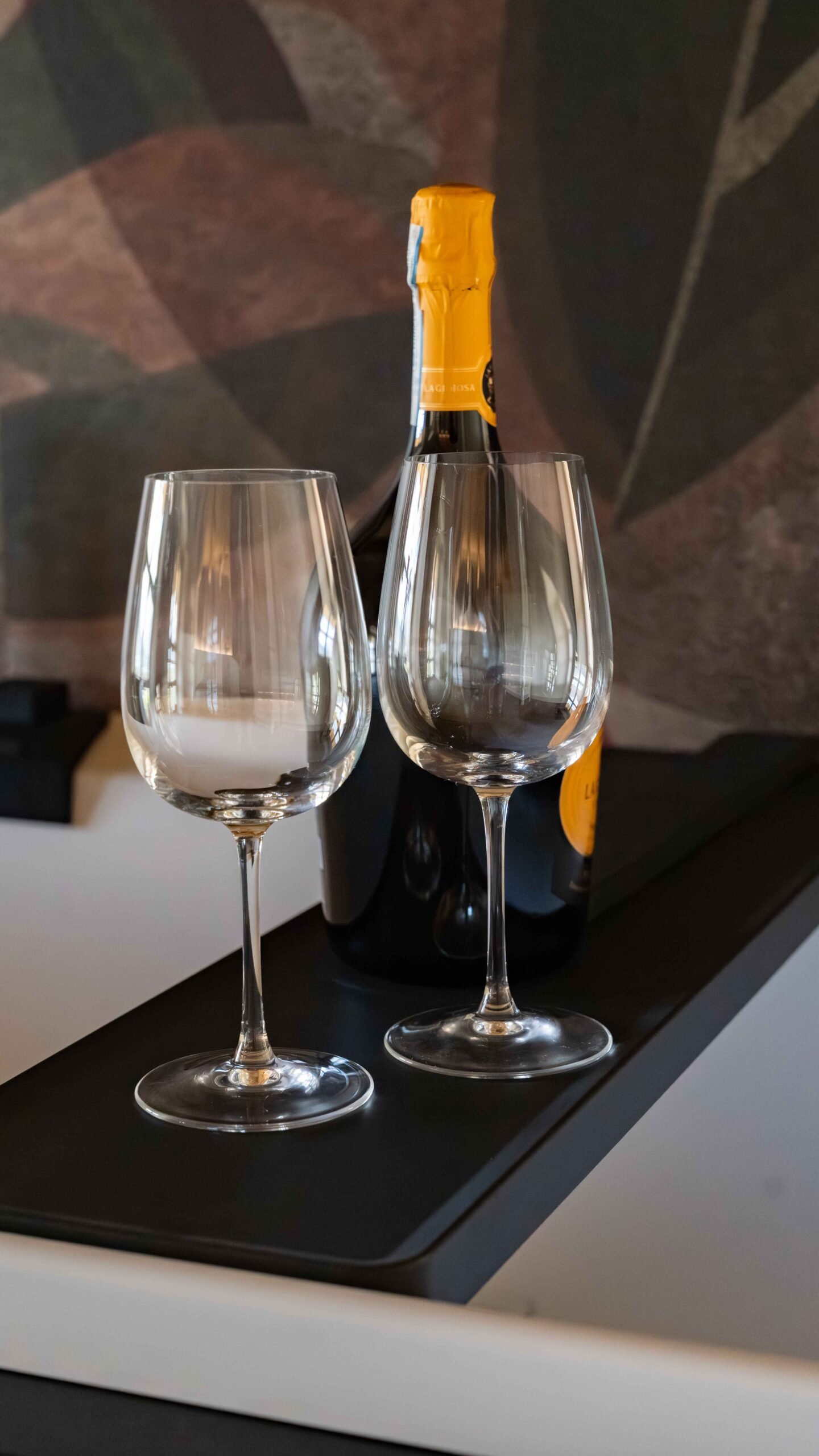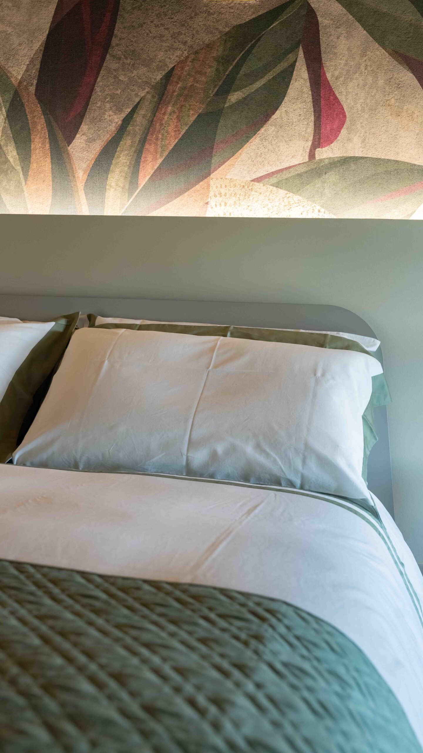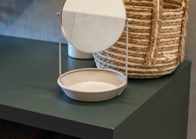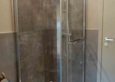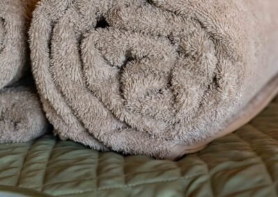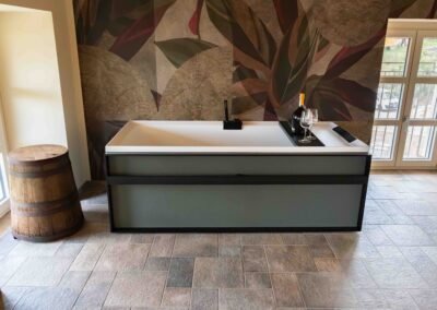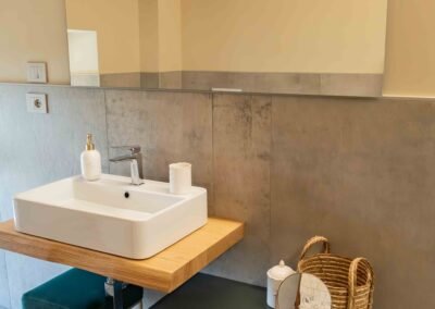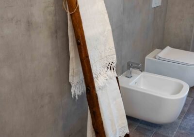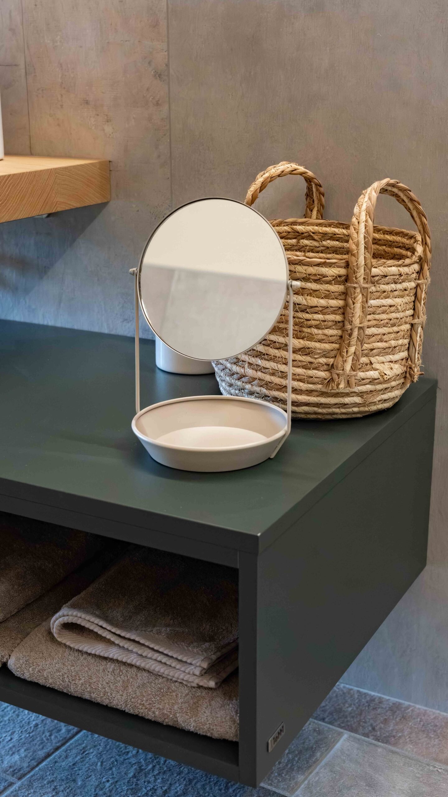 Il tema scelto è quello della Cantinetta, un tempo fulcro della cascina per la conservazione degli alimenti e luogo di festa durante la vendemmia. E’ la più spaziosa delle quattro camere e l’unica con la vista sui laghi. Offre, inoltre, la possibilità (su richiesta) di inserire un letto aggiuntivo diventando un’eventuale camera tripla. I colori di questo ambiente richiamano quelli presenti nell’antica cantina e spaziano dal verde bottiglia delle damigiane al viola dell’uva matura e sono in perfetta armonia con il panorama circostante. L’arredamento è studiato nei minimi dettagli per far sì che la tradizione e la modernità possano coesistere e dare vita ad un ambiente elegante e unico nel suo genere. Il letto matrimoniale, situato in posizione strategica, gode della vista sul panorama circostante e sulla vasca idromassaggio posizionata sulla parete opposta anch’essa con affaccio sul lago grande di Avigliana. Completano il tutto un armadio, due comodini, una TV, un frigo bar, una cassetta di sicurezza e una postazione caffè. Il bagno è preceduto dall’ anti-bagno ed è completato da sanitari sospesi, mobile lavabo con specchio e ampia doccia.